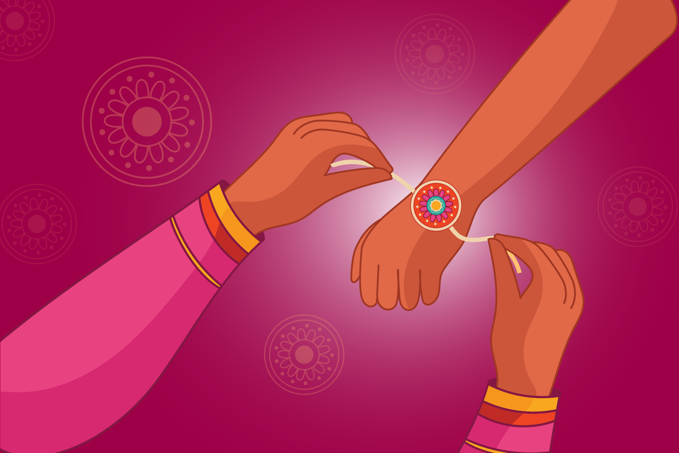 ‘Raksha’ means protection and ‘Bandhan’ means the bond of a relationship. On the occasion of the Raksha Bandhan Festival, sisters tie rakhis on their brother’s wrists, praying for their good health and well-being. Consequently, the brother promises to love and protect his sister forever.